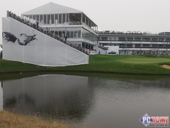我先将车开至大师赛指定公众区3号停车场,然后乘坐美兰湖的代步车前往场地,看到这块牌子时说明我已经快到了。
