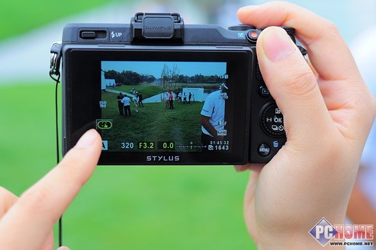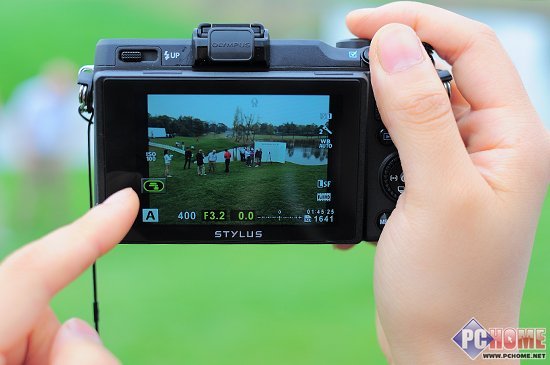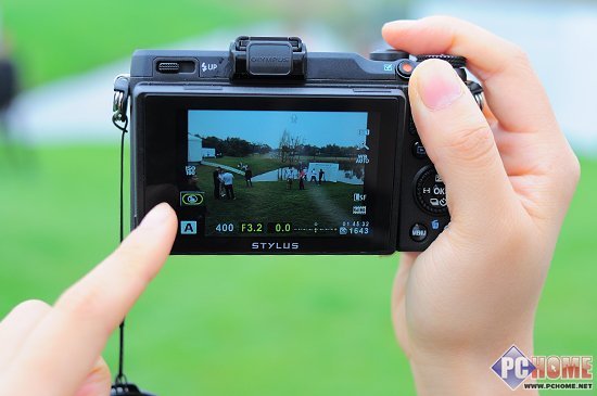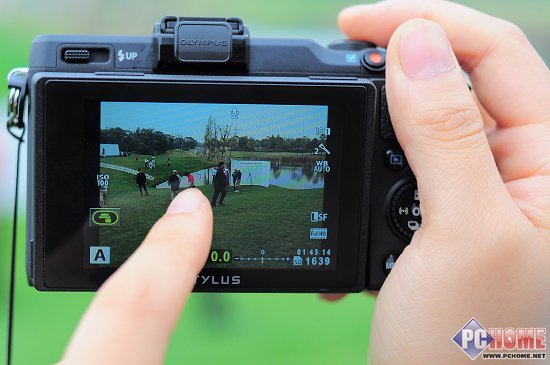 奥林巴斯XZ-2机身背面的液晶屏是可以选择触摸屏拍摄的,如今触摸屏也受到不少玩家的喜爱,它不仅可以让拍摄时更为轻松而且即按即拍也十分的方便,接下来我们就在室外看一下它是如何操作的。