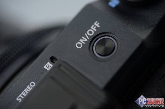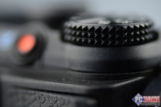 机身顶部的变焦拨杆通过细节我们可以看到,居然加了防滑处理,并不是普通DC光秃秃的一面,在变焦时起到了一定的防滑作用,而且在变焦时手感也得到相对提升,在变焦时我感觉拨杆的阻尼感很强,并没有一下子冲出去的感觉发生