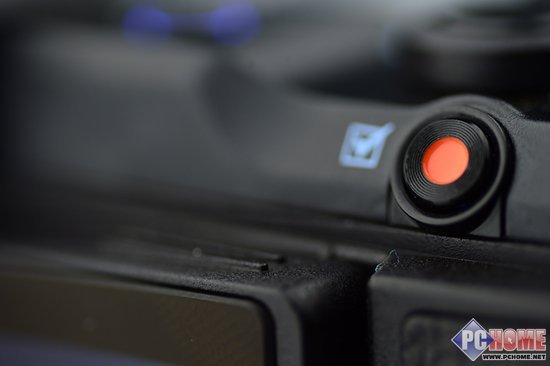 这个红色圈圈就是视频录制按键,位于机身背面大拇指胶皮的上方,我手不算太小,但是手持相机时直接靠大拇指触摸视频按键居然不是太顺手,这个设计跟OMD-EM5按回放按键一样累。