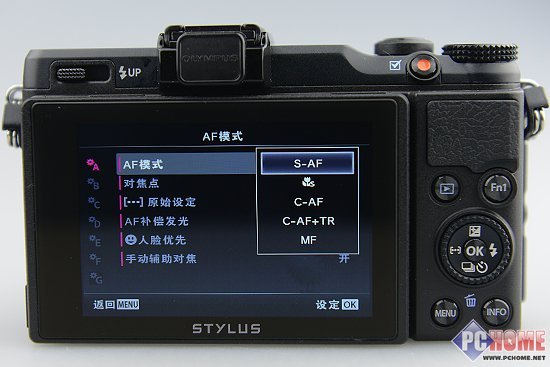 奥林巴斯XZ-2自定义菜单里的AF对焦模式也比较专业,分为AF-S、1cm微距、AF-C、AF+TR-C以及手动M对焦。