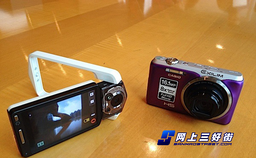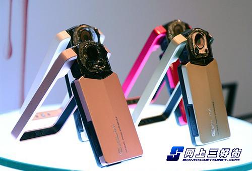 外观上,TR150采用了与前代相同的“框架式”结构,之所以这样形容完全是笔者词穷,不知道该怎样形容这种设计,第一眼看上去,也会狐疑TR150会不会是一部手机呢?TR150搭载一块与前代相同的3英寸46万色多角度旋转触摸液晶屏,分辨率达到960 x 480,取景、回放效果且不说,操控体验与TR100的定位就显得气场异常吻合。三围尺寸为122.8(W) x 59.0(H) x 14.9(D) mm,再加上157g的重量,算的上轻巧之流!TR150有金色、红色、粉色与白色四种外观颜色供广大用户选择,比前代TR100增加了粉色、红色。