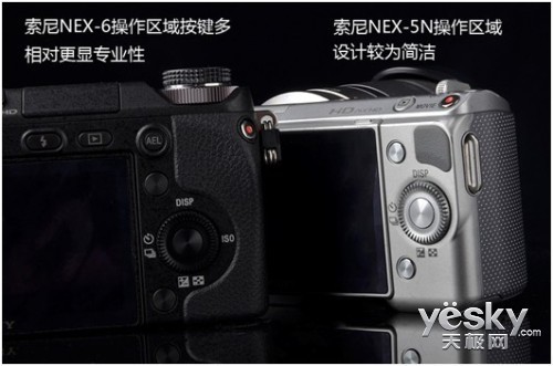 从以上几组照片中我们可以看出,索尼NEX-6相对于索尼NEX-5N在机身体积上较大,同时在按键多布局更为合理人性化,特别是视频录制键的安排,有效的避免误操作,大量蒙皮的使用更增加握持感。