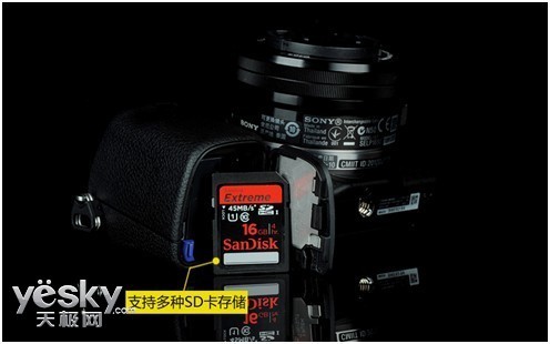 在存储方面,索尼NEX-6支持Memory Stick PRO DuoTM,Memory Stick PRO-HG DuoTMSD存储卡,SDHC存储卡,SDXC存储卡,扩充存储空间。让您尽情拍摄。