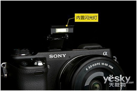 在索尼NEX-6机身顶部,除了有通用的外接闪光灯热靴外,还有一个内置闪光灯,配合大尺寸Exmor APS HD CMOS 影像传感器出色的高感光性能,即使在低光照条件下,亦可轻松记录清晰影像。