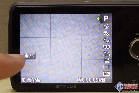 奥林巴斯VH-210的触摸对焦分为2种,第一种可以直接在屏幕上选择对焦点但不释放快门,第二种相对第一种更为方便,直接选择你需要的对焦点直接拍摄。