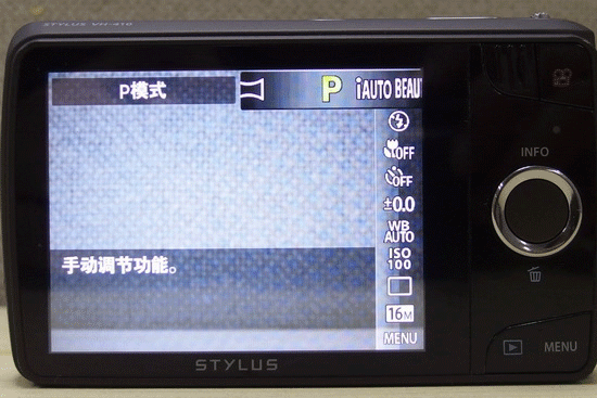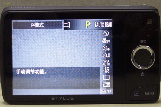 奥林巴斯VH-410的机身背面采用46万像素3.0英寸触摸式液晶屏。