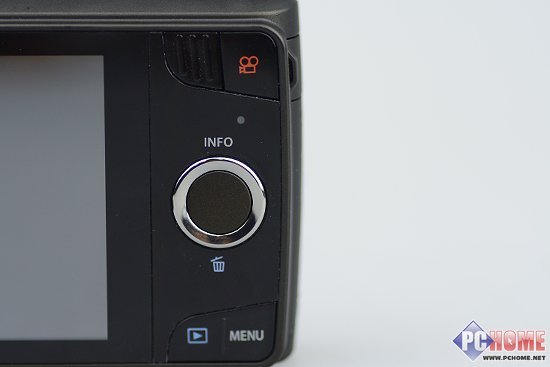机身顶部中间区域的位置是开关机按键和快门按键,开关机按键采用凹陷式设计,灵敏度适中能明显感觉到开关的反弹力,放在包里时并不用担心小小的晃动就自行开机了。