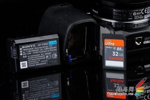 索尼NEX-6的电池位于手柄内,该机配备了一块1080毫安锂电池,官方给出的数据是使用电子取景器可拍摄约270张,使用LCD可拍摄约360张,续航能力尚可。并且支持记忆棒和SD卡存储。