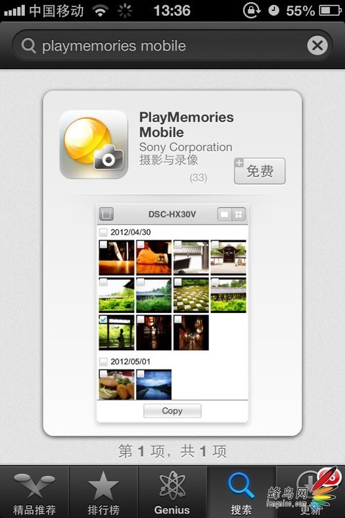 要想将相机同智能手机相连接,需要通过PlayMemories Mobile软件,该软件目前支持苹果和安卓系统。首先,在“播放”菜单中选择“智能手机观看”,然后选择选择需要传输的照片。在相机中选择该相机建成的热点,然后打开该软件连接成功后,手机上就可以显示出相机中的照片了。当然,还可以选择你想要的照片,发送到手机中存储。
