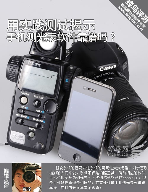 为了验证手机测光软件的准确性,我们特意准备了一部世光L758D测光表作为参照。由于笔者是iPhone手机用户,所以测试软件选择了iOS平台上免费,但功能强大的Pocket Light Meter软件作为测光软件。