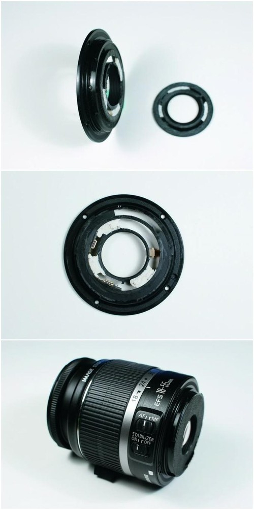 对于使用全幅机身的人来说,在日常生活的拍摄中,很多人希望拥有一支比大三元更轻盈的镜头。可惜很多优质的EF-S镜头只能专用于APS-C画幅的机身。 EF-S18-55mm F3.5-5.6 是佳能入门系列所搭配的套头,大部分佳能用户的第一支镜头就是它。后来再出的EF-S 18-55mmF3.5-5.6 IS(现已陆续升级为EF-S 18-55mm F3.5-5.6 IS II)版本不仅加载了防抖功能,而且对于高光部的紫边抑制得非常好,最近对焦距离达0.25米,加上价格低廉,体积轻巧,可说是性价比非常高的镜头。因 此,最常见的 EF-S 18-55mm F3.5-5.6 IS镜头就是我们的改造对象。