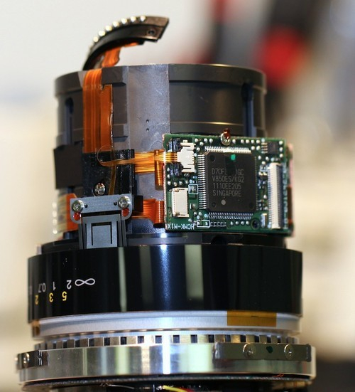 从拆下来的镜筒上我们可以看到腾龙的超声波马达,与佳能和尼康的很相似