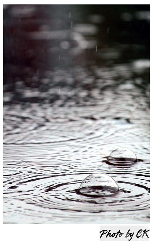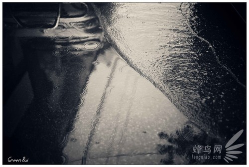 如果想净化背景,将主体(也就是雨滴)在画面中加以提炼,可以利用长焦镜头拍摄,视角锁定在地面,拍摄雨滴与地面之间的接触,尤其是大雨倾盆之际,雨滴与 地面积水之间更能迸发出别样的韵律。如果想记录雨滴落下瞬间的美,那就将快门速度调高,使用高速快门拍摄;如果想拍摄雨的柔美,那就放慢快门,如丝的美感 就突显出来了。