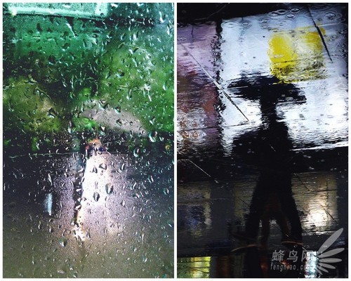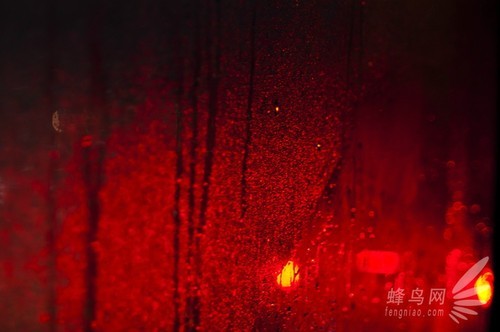 如果你怕雨水影响到了你的器材,可以尝试宅在家里拍摄雨景。毫无疑问,窗户一定是拍摄的媒介,想要增强雨滴落在窗户上的质感,可以在窗户外壁(朝向室外的 一侧)涂上凡士林,如果家里没有凡士林,油性较大的润肤油也可以。如果只是想表现挂在窗上的雨珠,可以把油涂厚一些,模糊环境可以凸显雨珠的晶莹与体积 感。