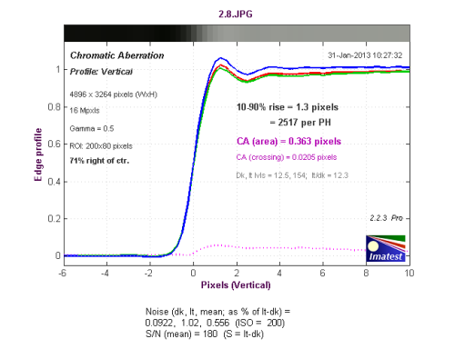 F2.8全开光圈镜头边缘垂直方向色散成绩
