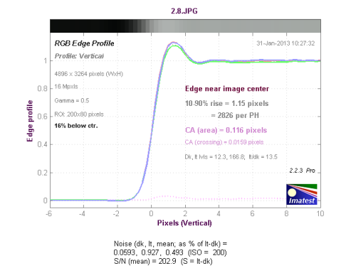 F2.8全开光圈镜头中心垂直方向色散成绩
