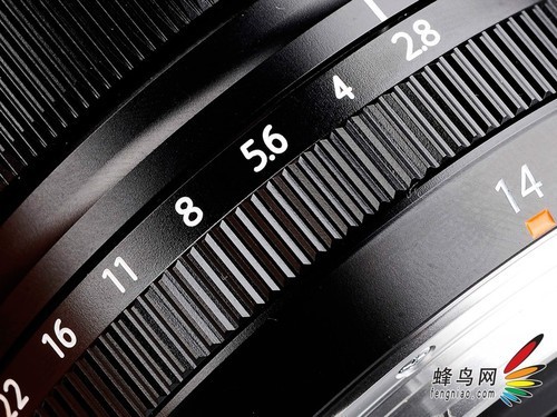 光圈环的设计也是一种复古的标志,不过对于配合X-E1这类相机,是必要的。X-E1上没有P/A/S/M这类的模式旋钮,仅有的是补偿和快门速度拨盘,再结合镜头上的光圈环,相机会自动识别当前的模式(如快门和光圈都设定自动,模式便是P)。