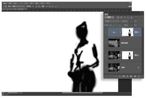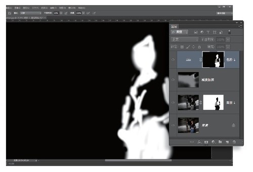 使用快捷键Ctrl+l反向色阶调整图层的图层蒙版,使人物部分变成白色,这意味着接下来我们对色阶调整图层进行的处理只会影响到人物,而不会影响到我们已经进行过静心处理的背景影调。