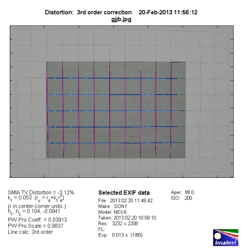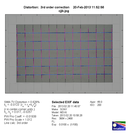 我们现在对索尼SEL1018镜头进行各焦段的分辨率测试,照例我们使用的是ISO 12233分辨率标版。搭配使用的就是索尼NEX-6。相机设置上我们选择精细JPEG格式、感光度ISO 100对标版进行拍摄。然后使用Imatest软件来对索尼SEL1018各焦段时镜头的分辨率进行测试。先从10mm焦段开始。