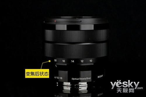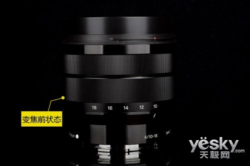 仔细看其实索尼SEL1018的外形与单反广角镜头很相似,只不过轻便很多,而他的变焦在设计上则显得与众不同,一般长焦端都是向外变焦,而索尼SEL1018在最长焦端18mm处却是向里变焦,镜筒呈现最短的状态,方便携带。