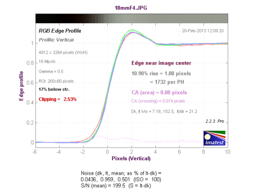 18mm焦段F4光圈中心垂直方向色散测试成绩