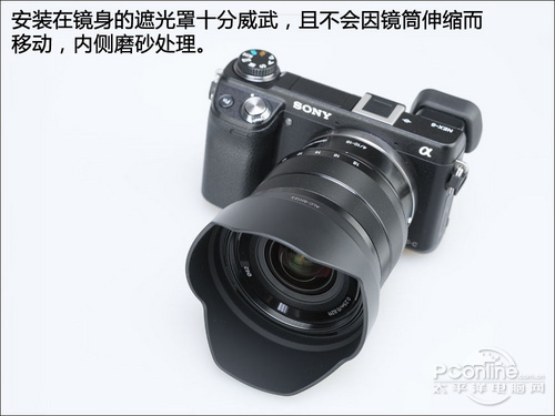 索尼E 10-18mm F4 OSS镜头不但镜头体积较大,配置的遮光罩同样硕大,两者相搭配后的效果就是让手中的NEX微单™相机变得十分威武,有关遮光罩的介绍下面会有更为详细的说明。