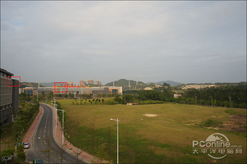 相比较广角端,等效27mm的长焦端也是全光圈下都有暗角,这就显得有些说不过去了。当然,边缘失光要比广角端轻微许多。总结来说,这支镜头暗角控制不算强。