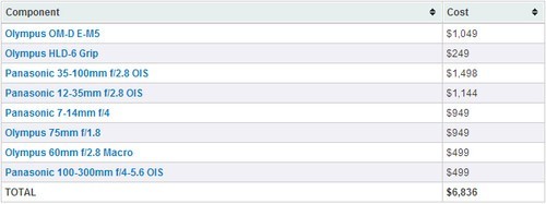 我得承认我有点震惊,我的M4/3系统竟然累计花了将近7000美刀。我很庆幸现在算了一下账,之前真没意识到我在这个系统上砸了这么多钱。