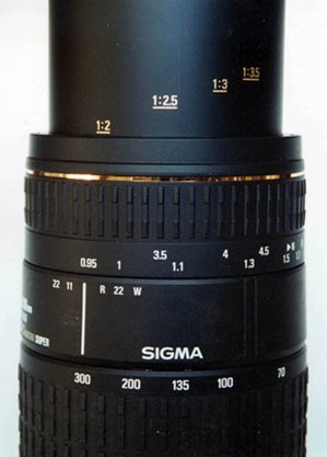 有近摄功能的变焦镜头,在伸出的镜头筒上有放大倍率的刻度