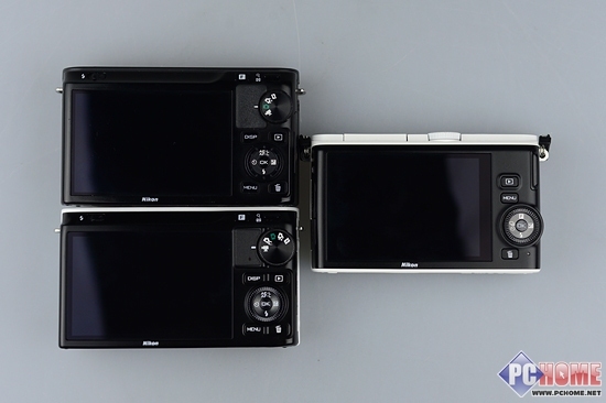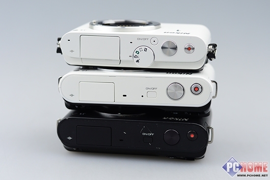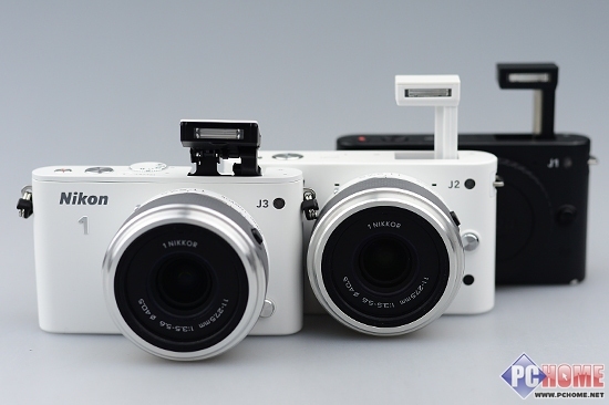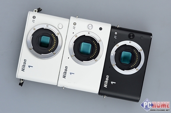 我们PCHOME评测室居然有三台尼康J系可换镜头数码相机,虽然J1机身为"小黑色",没有和尼康J2和J3组成统一的白色联盟,虽然有些可惜但这并不会影响我对这三款相机的外观评测,先把这三台相机放在一起,我们能很明显的看出这三款机型的外型大小。