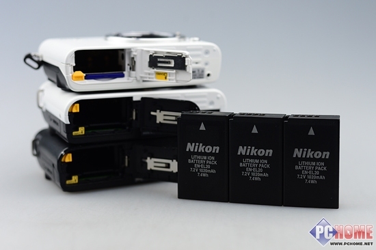 位于尼康J3相机的最底部是它的电池与存储卡槽,它支持主流最高速的SD卡,例如UHS-I 标准SDHC/SDXC记忆卡,锂电池型号为EN-EL20容量为1020Amh(同尼康J1、J2均使用同一型号电池)。