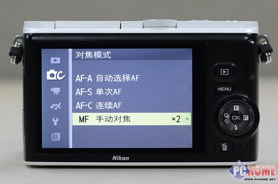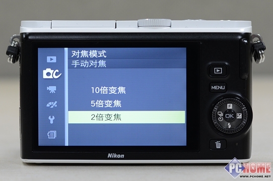 在手动对焦模式下,新款J3可以支持手动对焦的2X、5X、10X的修改调节,相比尼康的J2更深入细致了。