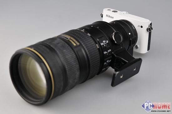 我正好身边有一台尼康1系可换镜头单电数码相机J3,接上尼康原厂FT1转接环后轻松实现2.7X的跨度焦距,那么组合上尼康70-200 F2.8"大竹炮"就达到了189mm-540mm F2.8光圈的这个焦段,体积分量也相当的轻巧、手持拍摄基本不成什么问题,焦距过长的话一般在室内是很难驾驭的,但是对于远距离室外题材的拍摄,如打鸟、赛车或舞台长焦装备都非常具有优势,我相信"一寸长一寸强"的道理对于喜爱鸟类、远摄类题材的摄影玩家一定都非常明白。