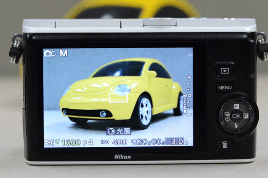 对于相对专业一点的玩家,我相信在特殊的场景下需要用到手动曝光,之前操控尼康J2的手动控制的时候是通过机身背面顶部的拨杆配合以及金属模式拨盘来完成手动操作,如今尼康J3对手动操控进行了修改,仅靠金属拨盘的右边按键就可以控制光圈和快门,这点相比尼康J2需要两个按键同步操作要简单很多,对于入门级玩家而言也方便尝试体验。