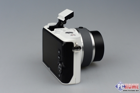 话说如此小巧造型下的数码相机可以藏一个内置闪光灯已经非常不容易了,上两代产品尼康J1和J2也都有使用内置闪光灯,但是外型上有些像机械方块、近看给人略微有点“木讷”的感觉,新一代的尼康J3做出了升级改进,使用了两节式弹性闪光,在美观上相比老两款J1和J2产品都有所改进,这个新闪光灯设计感觉有点和松下GF系列无反光数码相机类似,但是感觉相比松下GF系列的三节弹性闪光设计,坚固性上尼康J3显然做的更为出色而松下GF有点弹出去拉不回来的感觉~。