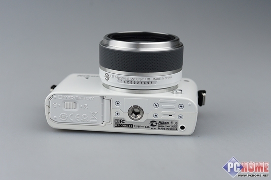 机身顶部印有相机的标示和产地,尼康J3单机身和镜头产地都来自MIC。