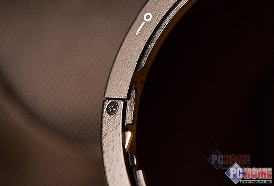 这款镜头的遮光罩采用的金属材质设计,把镜头遮光罩卸下后、从反面我们可以清楚的看到接缝处有固定螺丝锁紧。