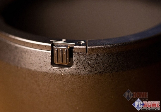 遮光上另有锁紧开关,如果不触碰该开关镜头的遮光罩是没有办法卸下的,稳定保险性相当强,避免了拍摄时掉落遮光罩的意外发生。