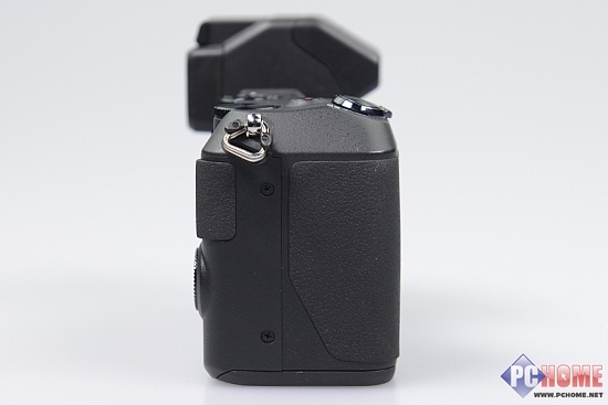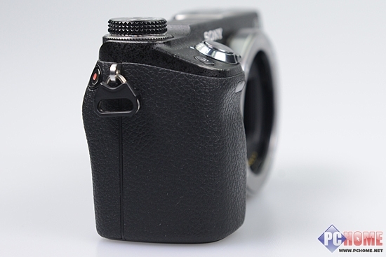 索尼NEX-6属于相对专业级的微单相机,从机身的右侧来看、手感同索尼NEX-7非常接近,手持处凸出的部位覆盖着整块蒙皮,索尼NEX-6蒙皮的柔软舒适度是本次横评中最好的。