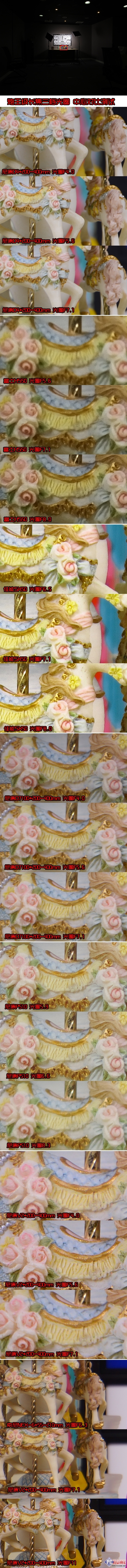 接着我来到了我们PCHOME的评测室进行一下这几款相机最远端镜头下光圈的表现力测试,红色框框为中心区域进行100%放大截图,首先将每一款镜头伸至最远端然后分别进行收光圈3档、进行一个锐利度度对比,尼康D4搭载的200-400mm镜头在F4最大光圈下画质有些偏肉,收到光圈F5.6之后位于该组合的最佳锐度画质,而F7.1之后画质再次下降。富士HS50最远端的画质坦率的说有些糟糕,F5.6时细节丢失的比较厉害,直到F8.0画质才开始稍许清晰,佳能SX50光圈F6.5时画面的锐度还是非常不错的,F7.1锐度惊人,F8.0再次下降。尼康D7100和D4搭配的镜一样所以镜头的画质和D4几乎一样,也是F4最肉,F5.6最锐利,尼康P510光圈F5.9时画质表现力最好,之后两档画质也开始陆续下降,尼康V2搭配200-400mm镜头所出现的画质由于焦段相比全画幅要更远所以放大后的表现力居然比尼康D4所拍摄的锐度更好,F5.6处于最佳画质,索尼NEX-6搭配的是55-210mm镜头光圈反而越小越锐度,F6.3时的画质最肉。