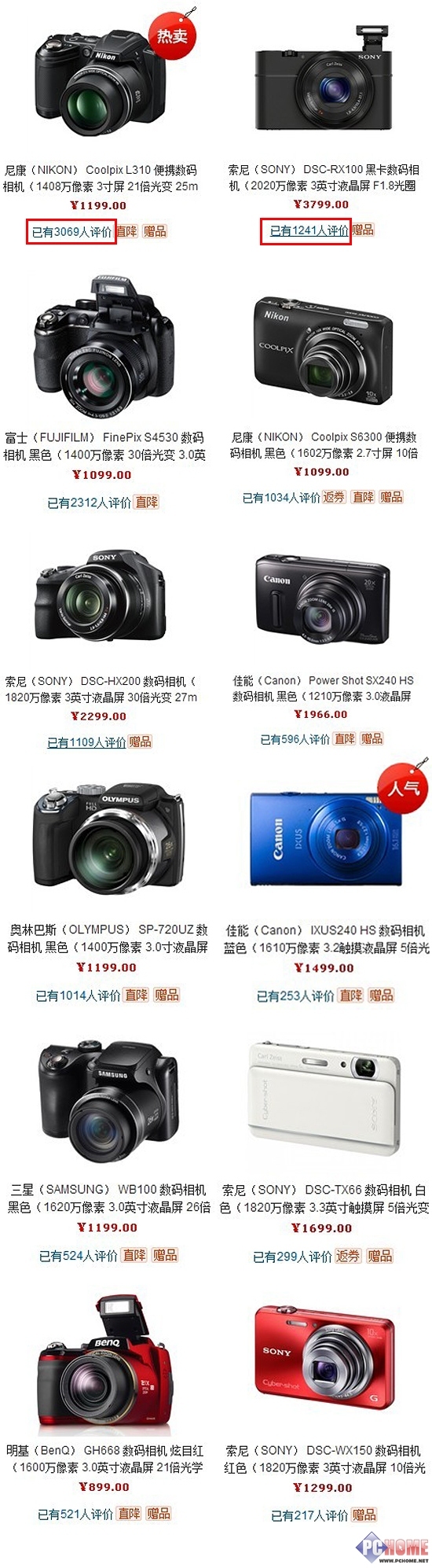 然后我又随机抽取了电商数码消费级相机里最热卖的几款品种进行分析,虽然卡片机市场上"大底"机群实力早已眼见为实,但是从消费级市场上的销量来看,拥有5X-10X倍左右光学变焦能力的数码相机销量并没有拥有20X倍以上变焦能力的消费级长焦相机来的热销,一千至三千的成交评论比比皆是,打着时尚、超薄旗号的卡片机销量下滑趋势确实明显。