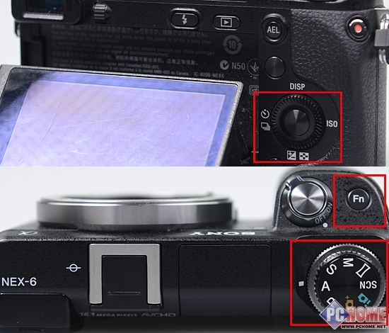 索尼的微单相机一如既往的走着简约时尚的路线,机身的按键相比单反而言虽然不多但是更为密集,主要控制的按键集中在机身背面的功能拨盘,最常用的就是连拍、对焦点切换以及ISO感光度调节,机身顶部的FN按键可以设置自己常用的选项按键,顶部的模式拨盘和调节拨盘一个是用来改变模式另一个则是手动调节快门。