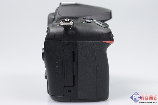 尼康D7100作为一款准专业级APS-C半画幅单反相机而言,从机身的右侧外形来看和尼康全画幅D600非常的相似,同样也是在存储卡仓位置没有配备橡胶蒙皮,而红钩钩位置同尼康D4一样有些过硬,手持过程中绝对不能把力直接全部借在红钩钩的下方。