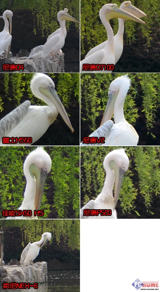 经过测试,尼康D4和D7100虽然在焦距上并没有占上风,但是中心画质的细腻度以及整体的表现力非常的强劲,相比这些小弟们也充分体现了单反的画质实力。而富士HS50和尼康的V2单电对比后发现、富士HS50在画质上稍逊配备更好镜头200-400mm F4G的V2,接着在佳能SX50 HS和尼康P520的较量中,佳能SX50在最远端居然出现了紫边现象,画质细腻度也不够理想,尼康P520虽然在最远端没有紫边但是画质和佳能SX50几乎是半斤八两,索尼NEX-6画质相比长焦相机要稍好但是焦距不够长表现力非常一般。