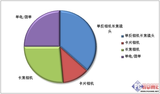单反相机/单反长焦镜市场销量比例占 约36.5%