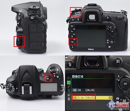 在尼康D7100机身顶部快门按键的后面有一个设置测光的模式按键,这个按键对于喜欢使用A档测光的玩家而言必不可少,不同的光照下快速切换使用不同的测光模式、尼康D7100作为一款半画幅单反相机,机内的1.3X的剪裁作为一大特色功能、无论是新手还是老玩家只要你拍摄鸟类或远摄题材作品时绝对是有用的。