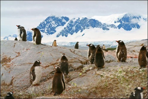 动物不能脱离它们的生存环境,将动物与环境因素融合起来,有助于表现动物的生活习性、生存状态,更好地演绎生态摄影的主题。此外,还可以让画面包含更多的 信息,甚至可以传递环保等更富内涵的主题。在本例中,摄影师将企鹅与南极冰天雪地的环境进行融合。画面采用富有戏剧性的折线构图方式,企鹅们就像一群冰雪 世界的守护者,在寒冷的环境中悠然自得。这幅照片不但突出了动物的生活特性,而且利用美丽的背景为画面增添了视觉冲击力。