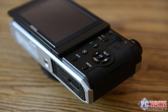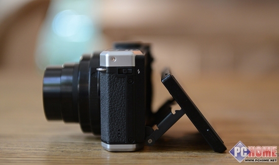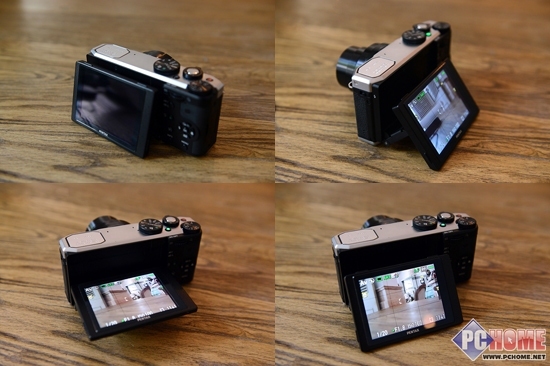 机身侧面上部则是闪光灯弹出式按钮,是利用左手拇指的设计。与此同时,这款相机拥有了一块3.0英寸92万像素的翻转屏幕,虽然不能够做到180度翻转,但在俯拍、仰拍、烈日或是特殊角度的情况下是很实用的,尤其让信息时代大家广泛的颈椎问题得到了一丝缓解。