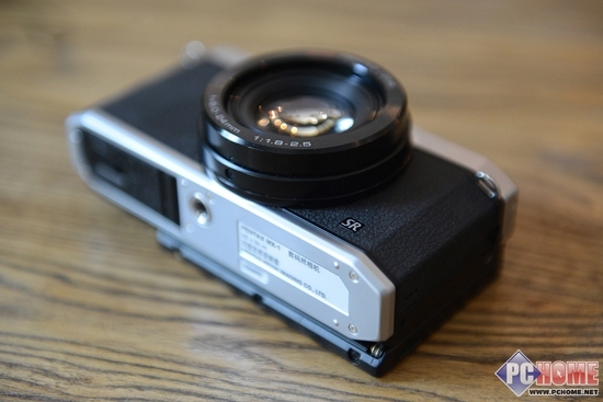 机身绝大部分用黑色亮面的蒙皮覆盖,具有很强烈的复古气息。顶部和底部清一色运用银色包浆涂层,宛然如宾得MX再世。值得一提的是,如果拿一块砂纸刮掉外面的那层漆,映入眼帘就是此前宾得MX-1所著称的“露铜设计”。当然,为了爱护机器,小编就不在这方面做尝试了。